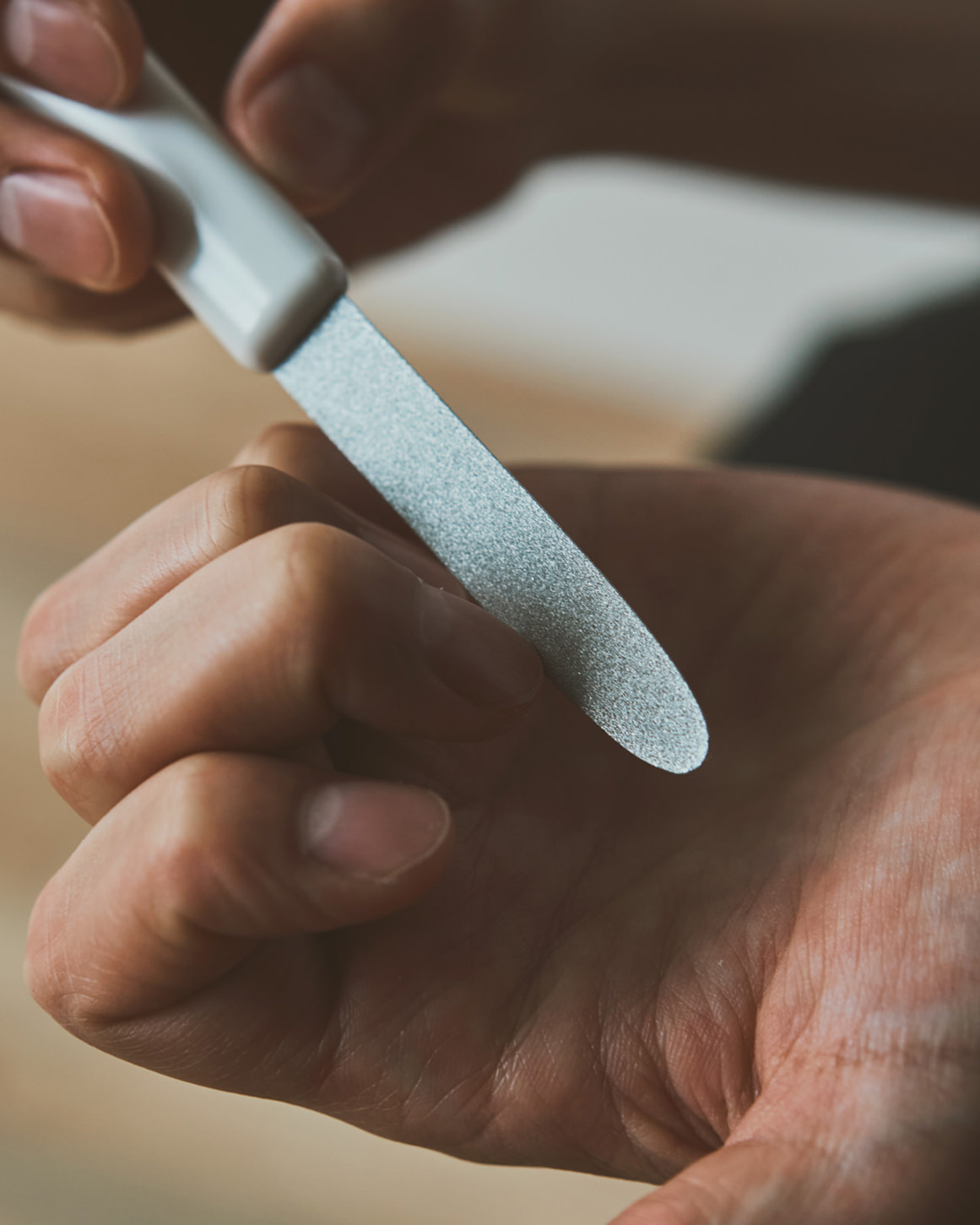 後藤:爪切りの裏についているようなヤスリのようなもので磨いていくんですよね。