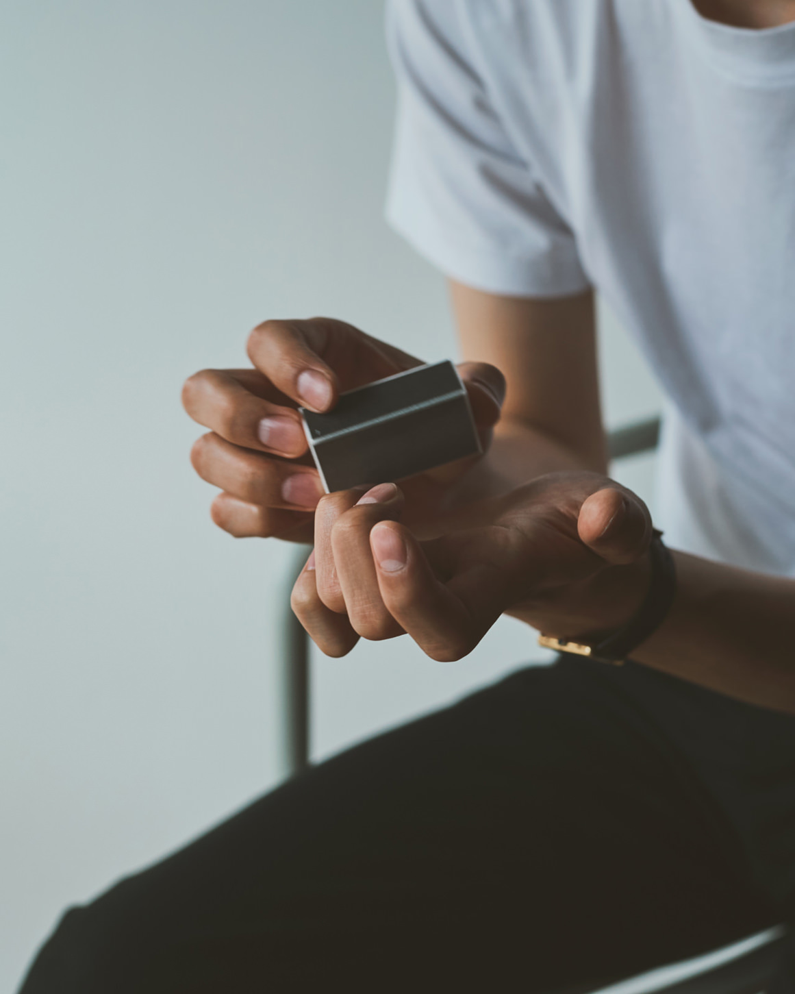 ユナイテッドアローズに入社して5年。現在セールスパーソンを務める後藤優人は、勤務時間のほとんどを店頭に立ち、お客さまをお迎えし、計り知れない時間を洋服に触れながら過ごしている。「すべてはお客様のために」を社是に掲げるユナイテッドアローズのフロントマンとして、当然マナーは欠かせない。シワのないジャケット。磨かれた靴。そして清潔感のある肌に髪型。「お客様に心地いい時間を過ごしていただくためにできるだけのことはやっています」と後藤は話す。こうして普段から身だしなみについて人一倍考える後藤の指先のケアはどうだろう? それを当人に聞いてみると「洋服を触っている時間が多いので、どうしても指先は乾燥しがちです。かといってハンドクリームを塗って洋服を触ってしまうと、洋服を汚してしまうことも。ですから普段は定期的に爪を切るぐらいです」。そんな後藤の指先を、表参道の近くにあるukacojp/storeでネイリストの古屋 葵さんに見てもらうことにした。