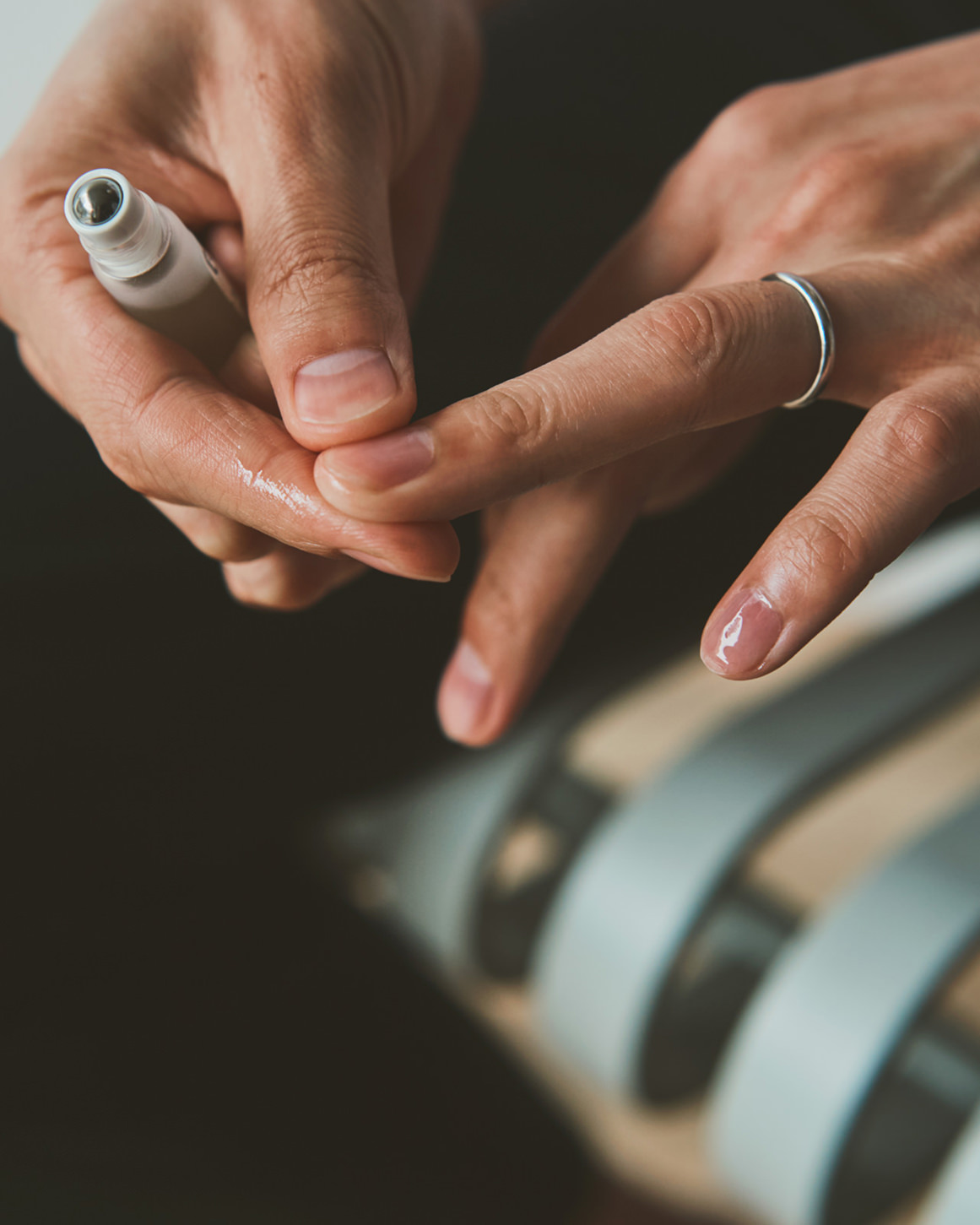 古屋:それが終わったらネイルセラムで栄養を与えていきます。爪の表面だけでなく、裏にも塗布してあげてください。