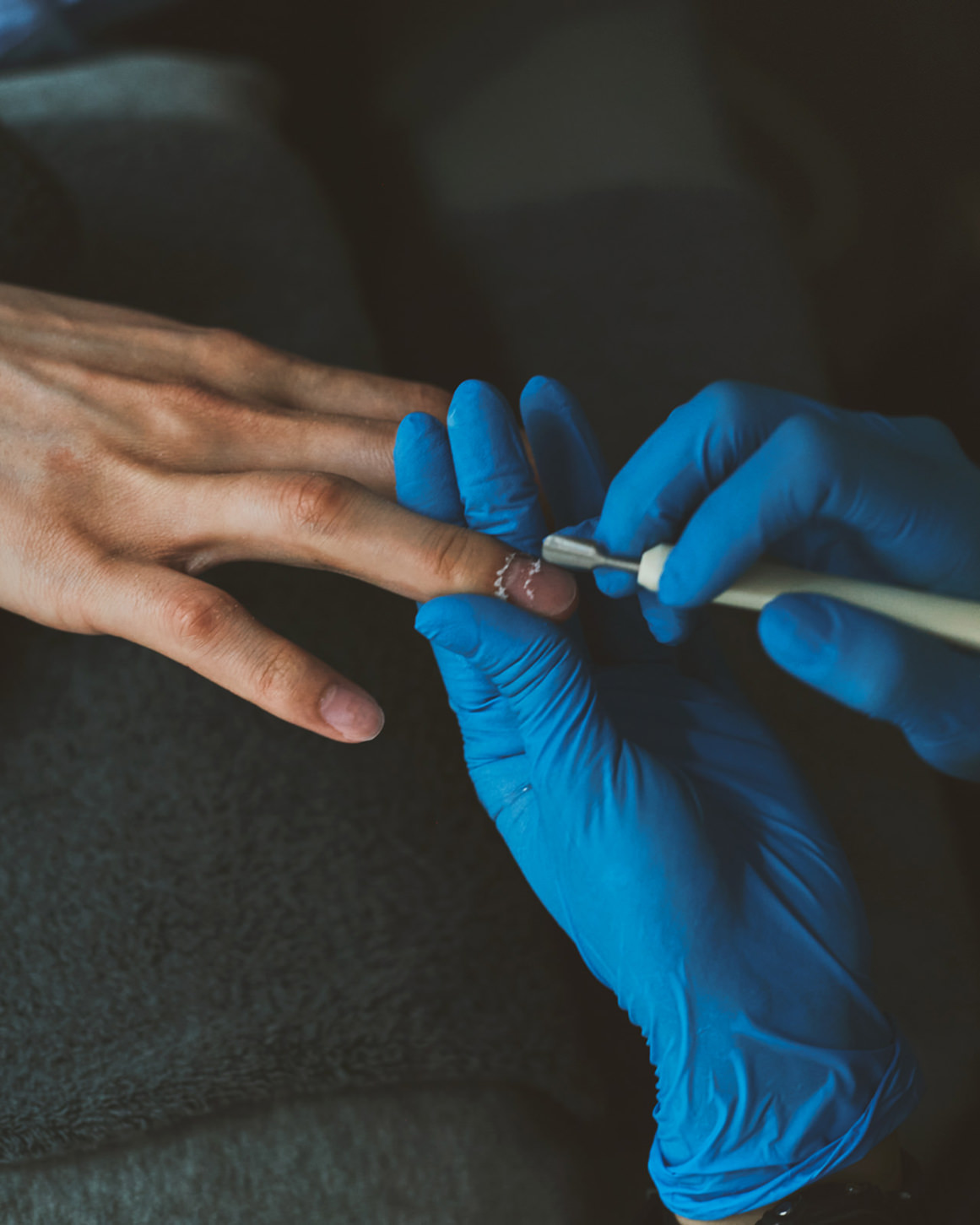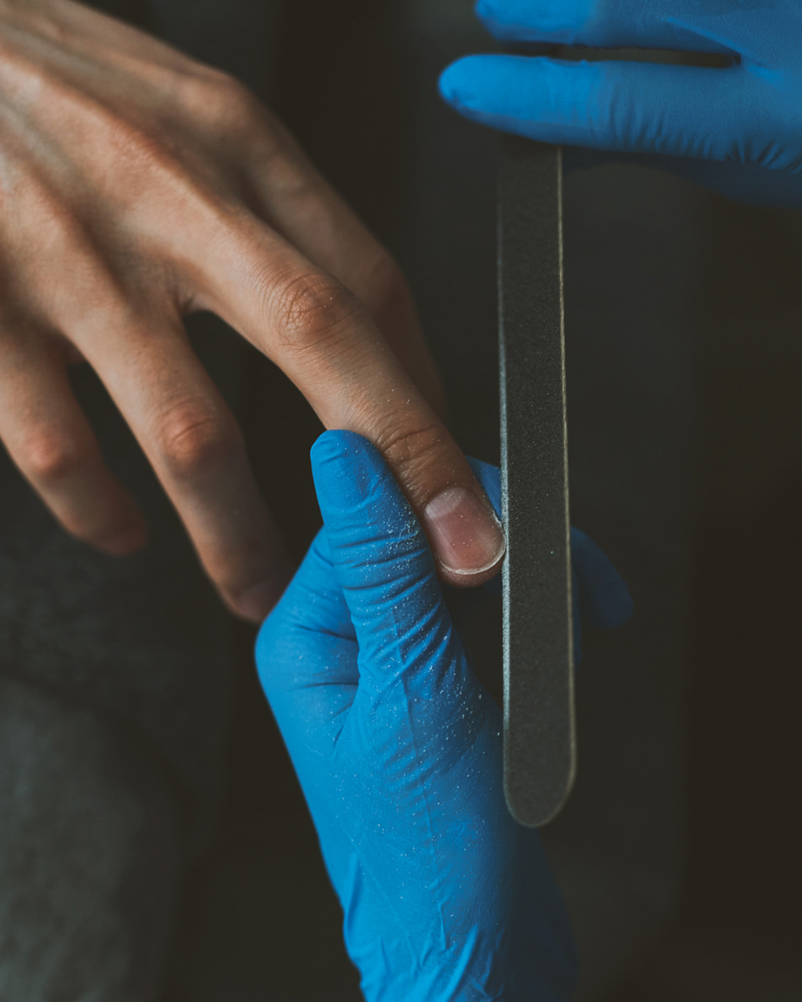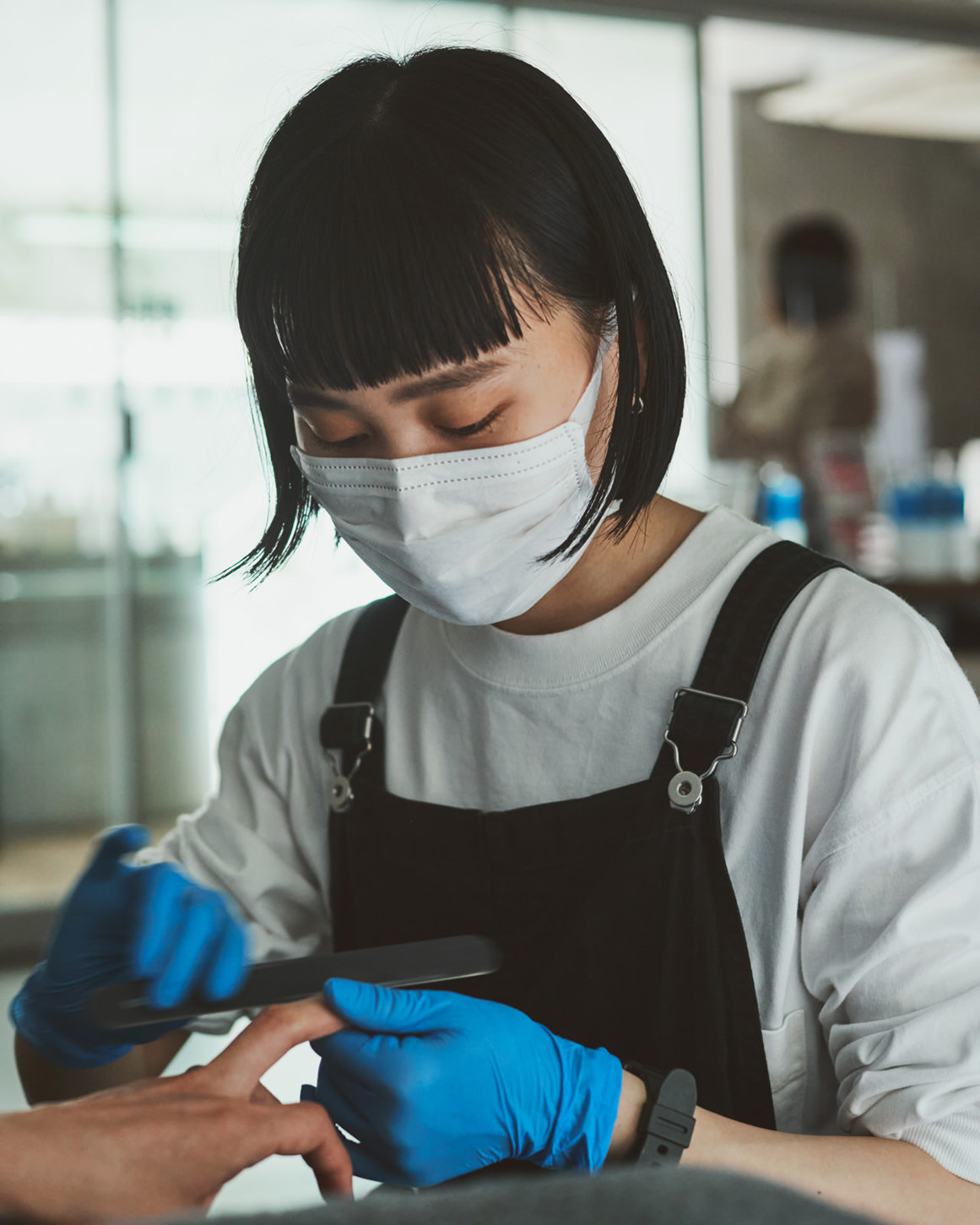 古屋:お任せください(笑)。まずは、ファイリングと呼ばれる工程をしていきますね。いわゆる爪やすりを使用して、指先の状態を確認しつつ、施術しやすいように爪の長さを整えていきます。