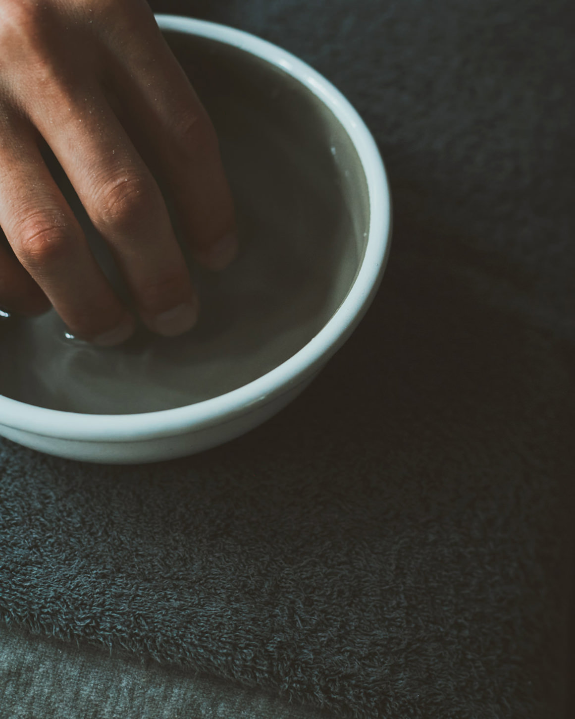 古屋:ファイリングで爪の長さを整え終わりましたら、甘皮や溜まった角質を取り除いていきます。まずはこのボウルの入ったぬるま湯にしばらく指先を浸しておいていただけますか? 甘皮をふやかしていきます。