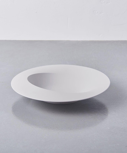 「いやいや、朝からちゃんとしたボリュームのお食事をゆっくり食べたいという方であれば、パンを足したりするのでしょうかね? オーバルプレートは見た目もほどよくさっぱりしているので、ちょっと大きめのプレートに。これはパスタ皿と呼ばれるちょっと深さのあるお皿で、大きく見せてあげる。するとお腹はもちろん、視覚的にも満足できる佇まいになります」