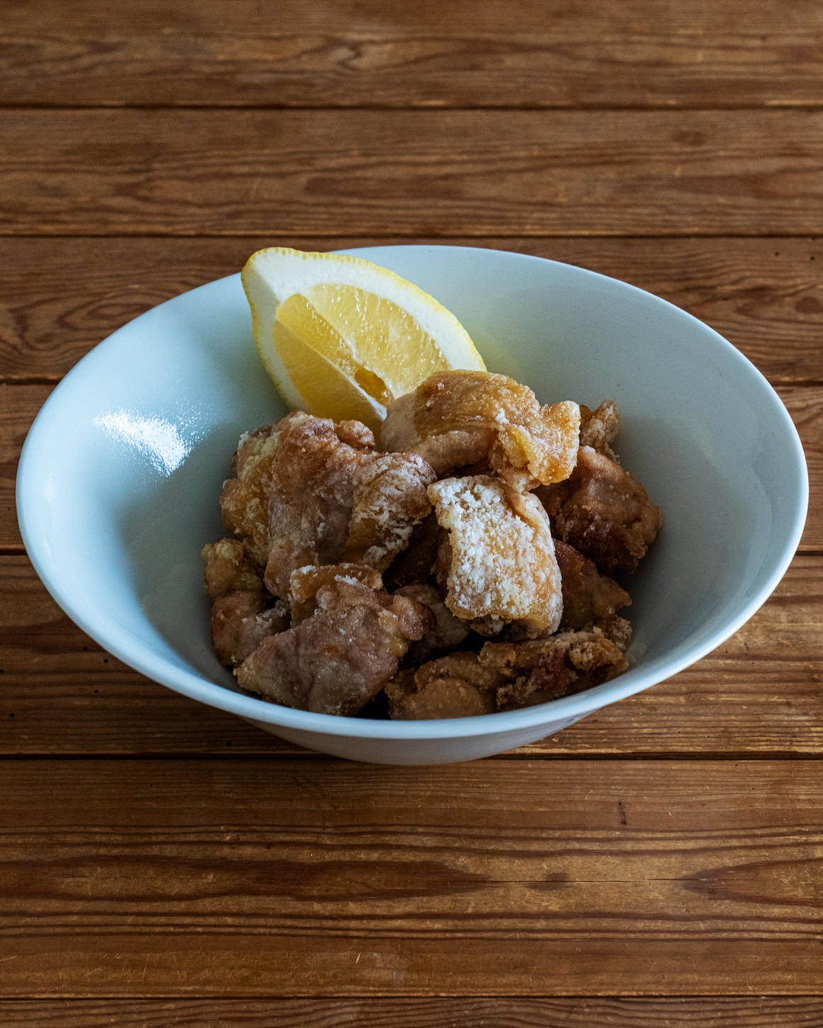 「唐揚げといえば平皿のイメージがあると思います。しかしボウル状の器に入れてみると平皿よりもボリューム感ができて食欲が湧きますよね。カットしたレモンを添えてあげるだけで、なんかいつもとは違う唐揚げの風景になります。ボウル状の器はよくも悪くも熱がこもるので、このままおいて置いておくというわけにはいかないですけどね」