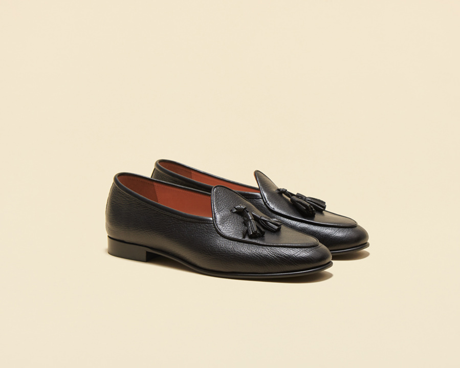 ベルジャンシューズをモチーフにしたタッセルローファー。シングルソールで華奢なフォルムでありながらも、驚きのクッション性により非常に高い履き心地を実現。素足履きも想定し、アッパーはソフトなレザーを使用。クラシカルな装いには適度なハズしが出てこなれた印象に。カジュアルな装いではエレガントな雰囲気をプラスする。