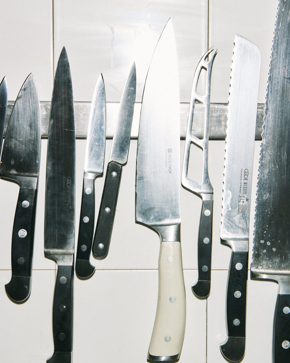 「魚を捌いたり、チーズを切ったり、パンを切る包丁、果物を切る時とかに使うペティナイフとそれぞれで使い分けている。これもある種、機能性ゆえのデザイン。ドイツの<ギューデ>や<かね惣>など」