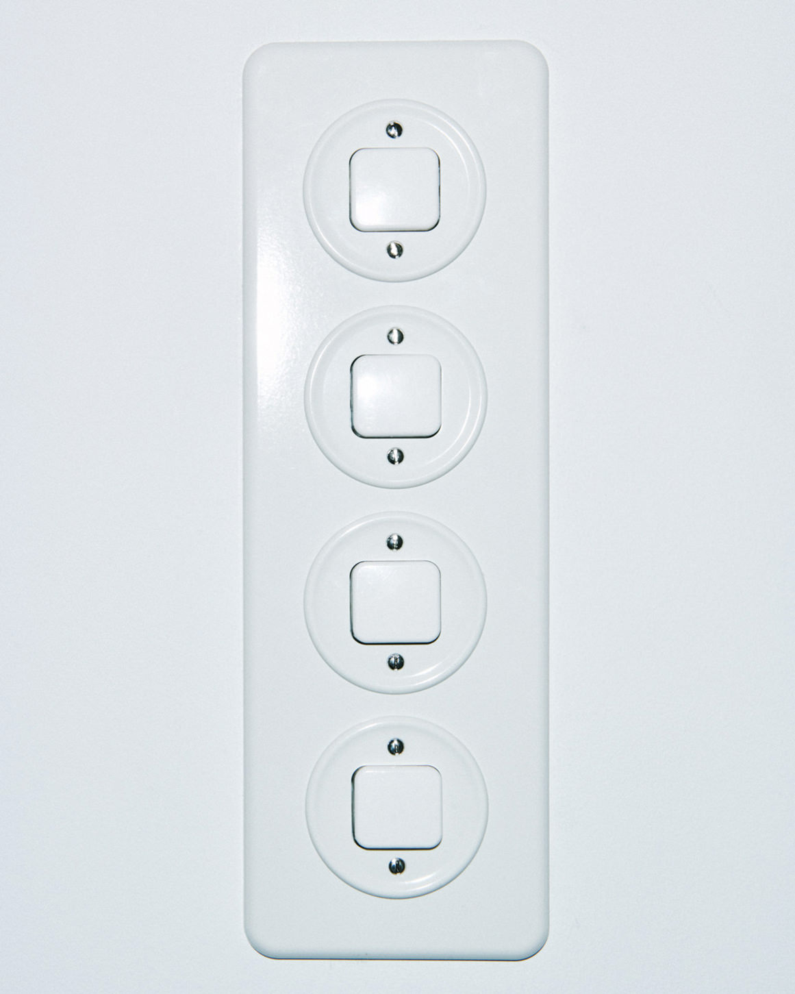 「事務所を引っ越した際にどうしても使いたかったスイッチ。スイスの公共建築などでよく使われているものは、スイスから取り寄せたもの。多分日本でこのスイッチを使っているのはウチだけかもしれない」