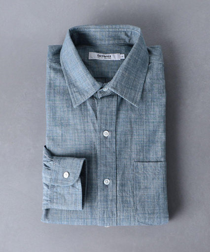 取材当日に栗野が着ていたDISTRICTのシャンブレーシャツ