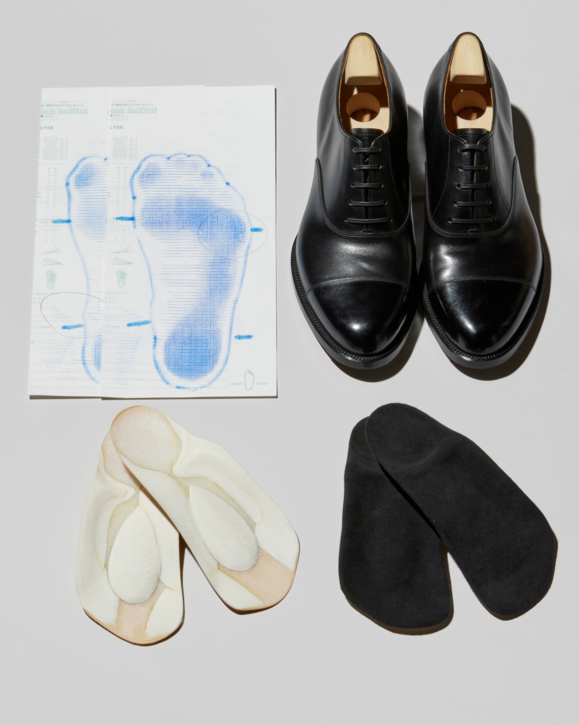 「靴を履いた後のアフターケアももちろん大切なことですが、もっと長く大切な靴と付き合いたいということでしたら、“正しく歩く”ということが靴を長く美しく使うためのポイントだと思います。正しく歩くためには、真っ直ぐ立つ必要があります。体重のかけ方がアンバランスになってしまうと、例えば足をひねって歩いてしまったり……。するとソールが変な角度ですり減る。しかしこれは意識したからと言ってすぐに治るものではありません。体重がかかる位置を変えるのは難しい。ですから、インソールなんです。足は、全身を支えている部分。足の使い方を整えることで足のねじれ、歩き方、姿勢も整います。すると靴も美しい形のまま使いこまれていきます」
