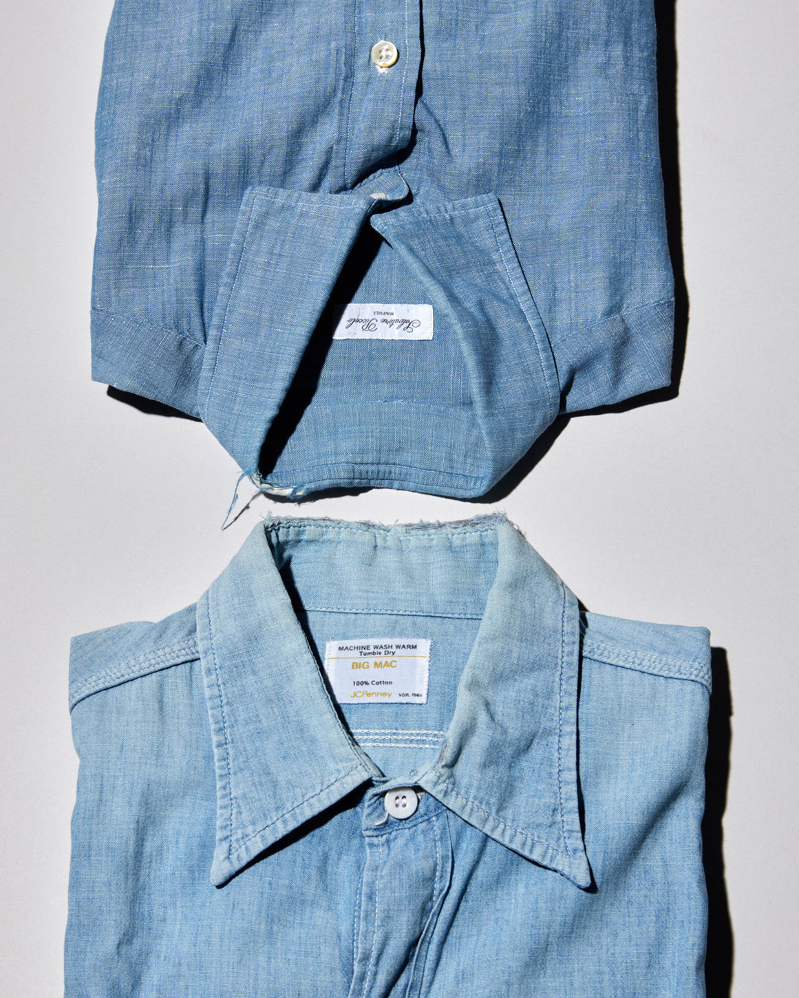 栗野宏文はユナイテッドアローズの中でも“物持ちがいい”として有名。当然ものに愛情を持っていたり、それぞれのアイテムにストーリーがあるからこそ大切にするという理由もあるが、それ以外にきっとなんかしら特別なケアをしているだろう……と思って話を聞いた。栗野が持ってきたのは40年以上着ているという<ビッグマック>と10年選手の<サルバトーレ ピッコロ>のシャンブレーシャツ。そんな長い付き合いをしているとは思えないコンディションだった。