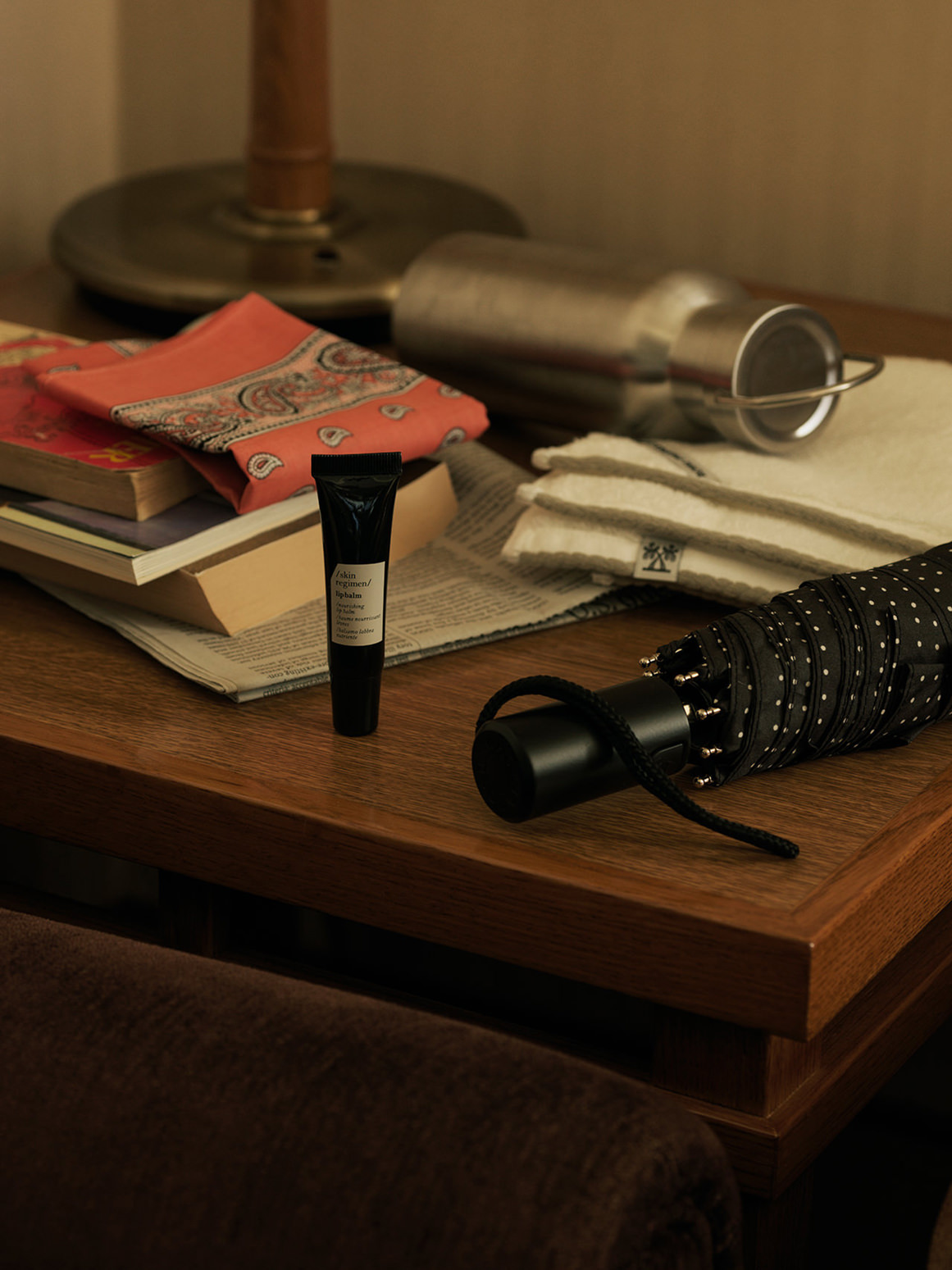普通に生活をしているとゴミは当然でてしまいます。喉が渇きコンビニで購入するペットボトルのお茶、突然の雨で購入したビニール傘、外出先の洗面所で使うペーパータオル、お気に入りのコーヒーショップでテイクアウトするペーパーカップ。中にはリサイクルされるゴミもありますが、私たちの意識も少しずつ変えることも必要かもしれません。日常生活を営む上ででるゴミに対して、少し気をつけることだけで変えられることはたくさんあります。例えばハンドタオルやハンカチを持ち歩いたり。家で淹れたコーヒーやお気に入りのお茶をマイボトルに入れて出かけたり。少しずつですがゴミは減るでしょう。こうして毎日使うものにはきちんとお金をかけることが大切かもしれません。乾燥する季節の必需品、リップクリームはどうでしょう? <コンフォートゾーン>スキンレギメンのリップバームは、アボカドエキスなどの高保湿成分をたっぷり含んでいるので少量でも効果が期待できます。またチューブタイプは、スティックタイプに比べると使い切りやすいという点も。こうしたモノ選びも、私たちがゴミを減らすためにできるマナーの一つなのかもしれません。