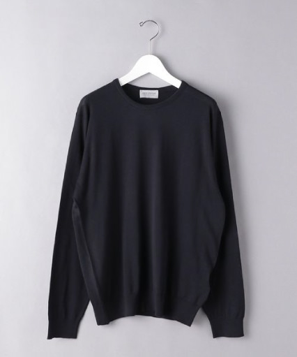 たとえばネイビースーツやネイビーブレザーを筆頭に、私たちにとってネイビーは最も身近で最も特別な色。ネイビーのハイゲージニットというと、それ単体ではテイストもニュートラルに近いから、組み合わせるアイテムによってさまざまなスタイルに馴染んでくれる懐の深さを持っています。そんなネイビーのハイゲージニットは総じて言えばスタイルに上品さをプラスしてくれる。それこそこのアイテムを長い間、私たちが愛用する理由かもしれません。