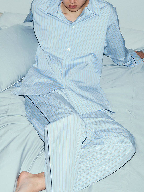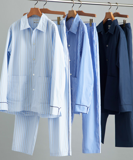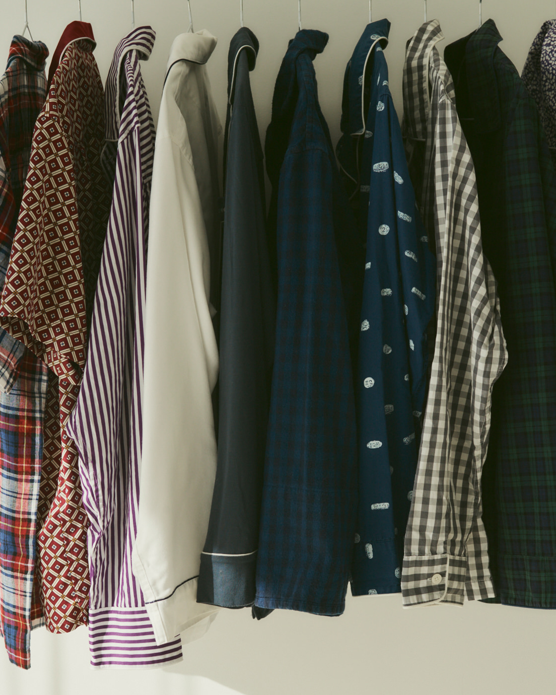 「パジャマを着て寝るようになったのは20代の頃。もともとは睡眠の悩みがあって、それを解決する一環としてそうするようになりました。気に入ったものを見つけるたびに少しずつ買い足し、今手元にあるのは15着ほど。その時々の気分によって3,4着をローテーションします。選ぶ上で重視しているのはデザインですね。普段着との差別化を大事にしています。パジャマを着ることで気持ちのスイッチを切り替えたいので、街着としてはあまり着ないような色柄や、いわゆるパジャマらしいものが落ち着きます。これはいろいろ買ってみて気が付きましたね。洋服屋としてさまざまな服やスタイルを見てきて、やっぱりTPOに合った装いってすごく素敵に見えると僕は思うんですね。パーティシーンでのタキシードなんてめちゃくちゃかっこいいじゃないですか。装うためのスーツがあるように、寝るためのパジャマがある。その特別さが贅沢に感じられて僕はパジャマが好きだしこだわりたいと思うんです」