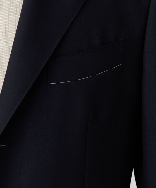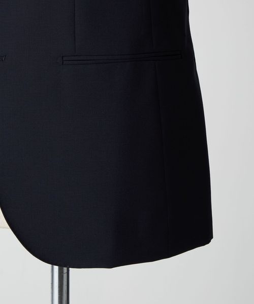 スタンダードなデザインで使い勝手の良いシングル3ボタンスーツ。