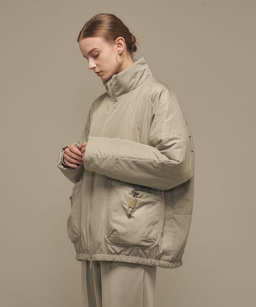 撥水加工を施した高密度のタフタを使用した、中綿入りのブルゾン