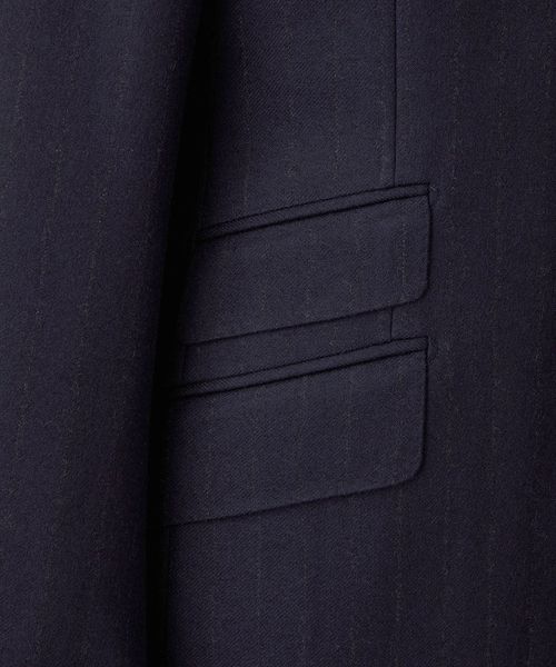 上質な素材織られたチョークストライプ生地の素材感や立体的な仕立ても魅力的な一着です。