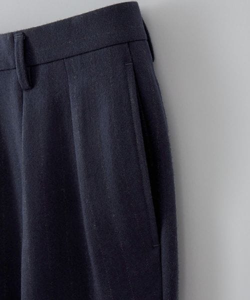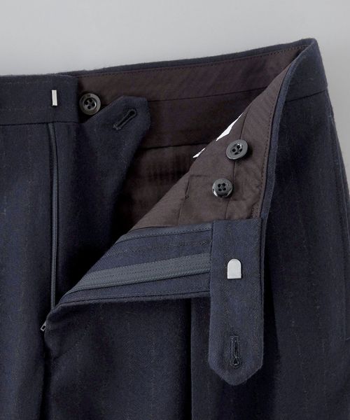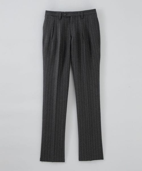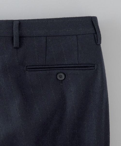上質な素材で織られたチョークストライプ生地の素材感も魅力的な一本です。