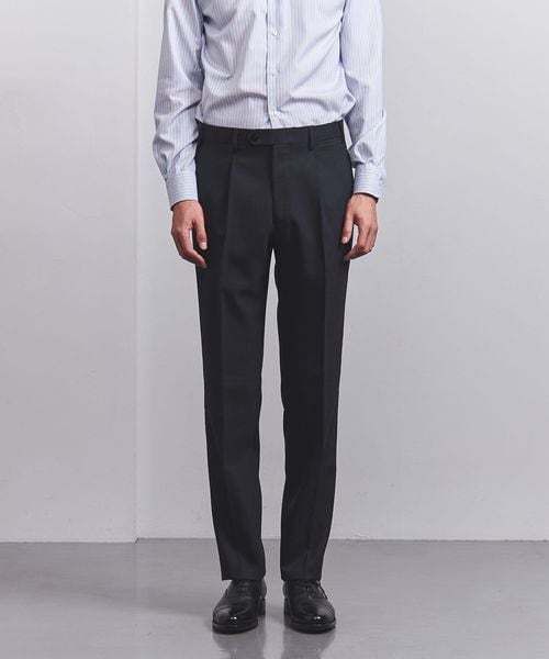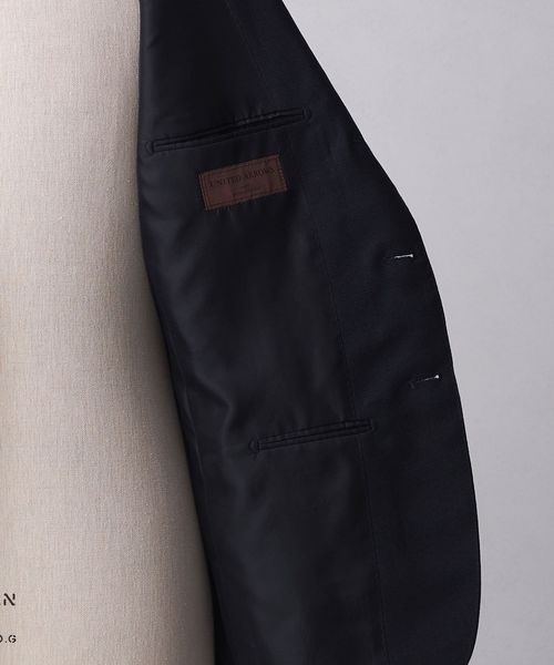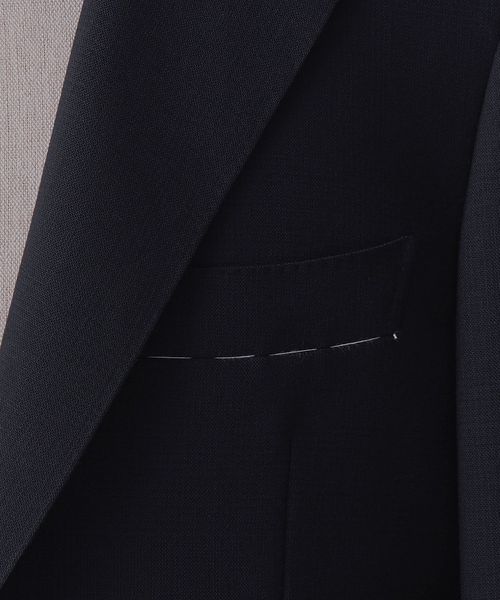 国内屈指の技術を誇る縫製工場で仕立てており、直線的なショルダーラインと男らしい胸まわりが特徴で、風格のあるスーツスタイルを演出いたします。