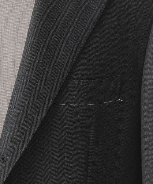 ミックス感のあるチャコールグレーのヘリンボーン柄が特徴です。