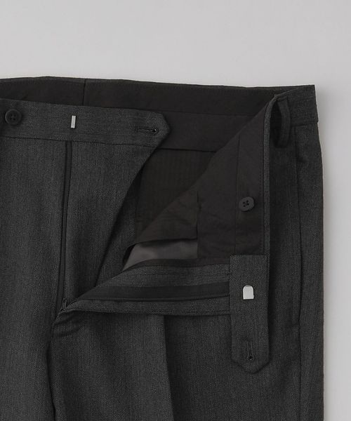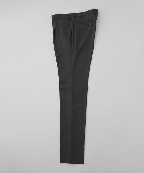 テーラードジャケットはシングル3ボタン、スラックスは1プリーツのテーパードシルエットで汎用性の高い1着です。