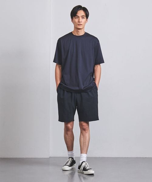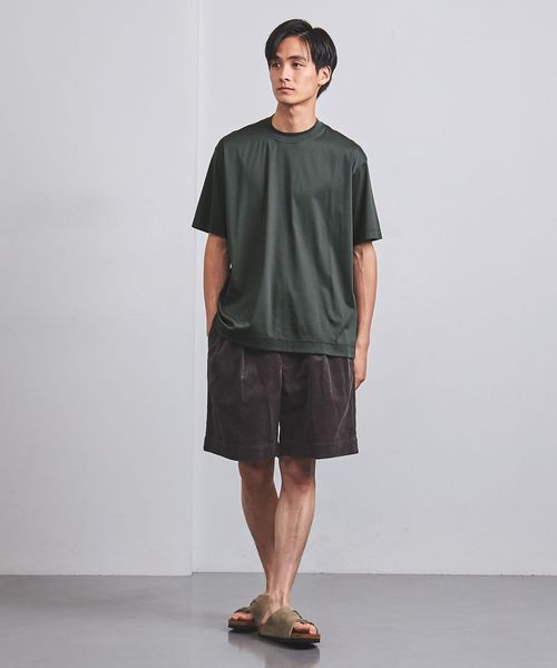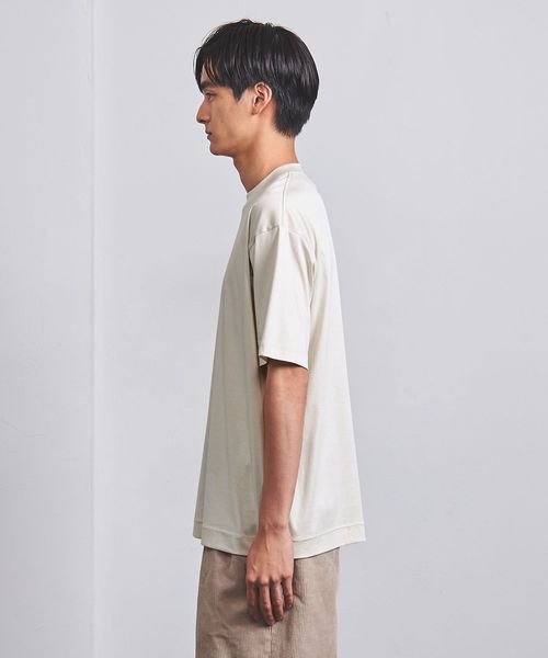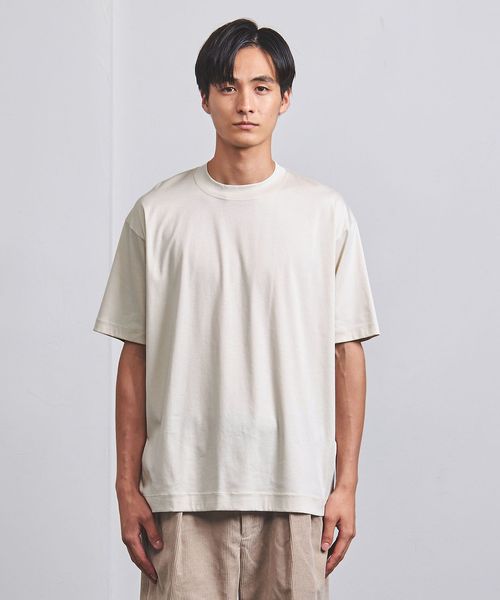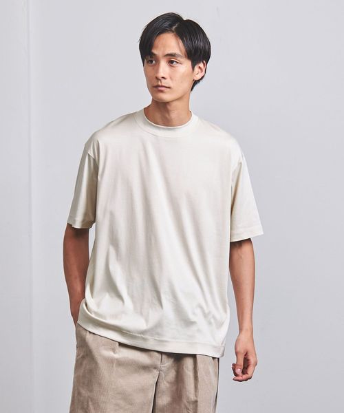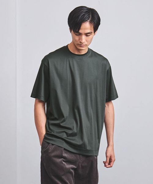 シンプルでありながら素材に適度な光沢感があり、品よく見えるクルーネックTシャツ。