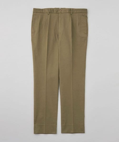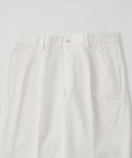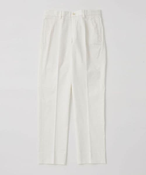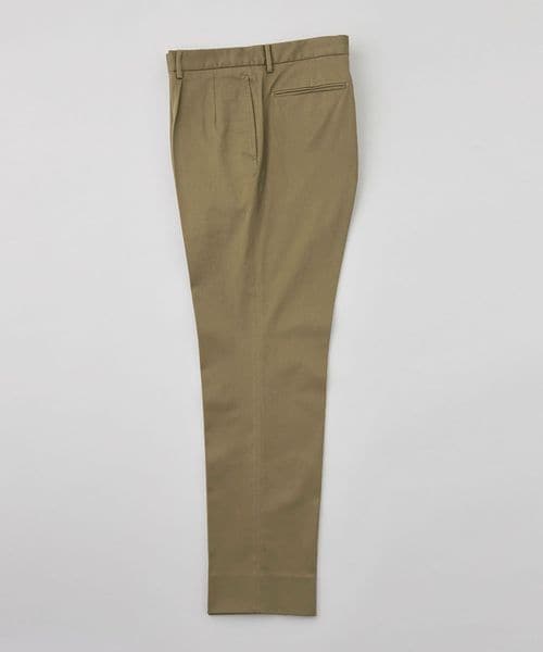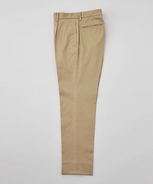深めのプリーツが生み出すややゆとりのあるウエスト周りに、足回りは細すぎず太過ぎずの程よいテーパードシルエット。