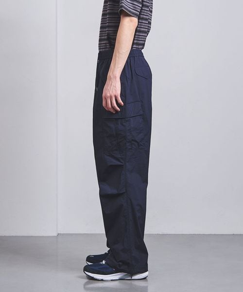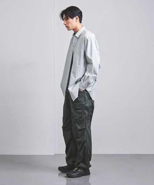 ワイドシルエットに適した薄手で程よくハリ感がある軽量ナイロン生地を使用。