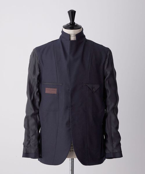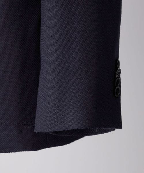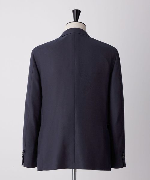 スッキリとした端正なシルエットのネイビーシングルジャケット。