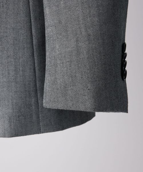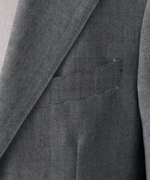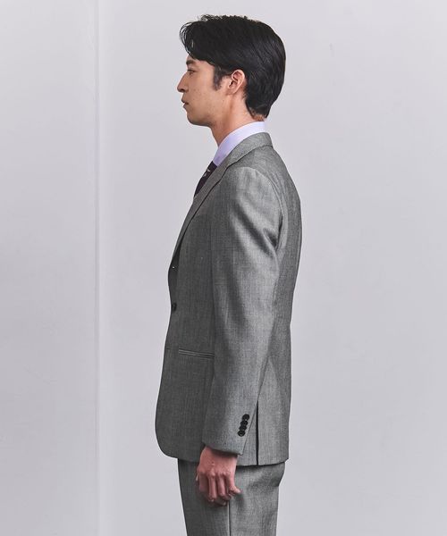 ざっくりとした風合いの生地を使用したシングル3ボタンスーツ。
