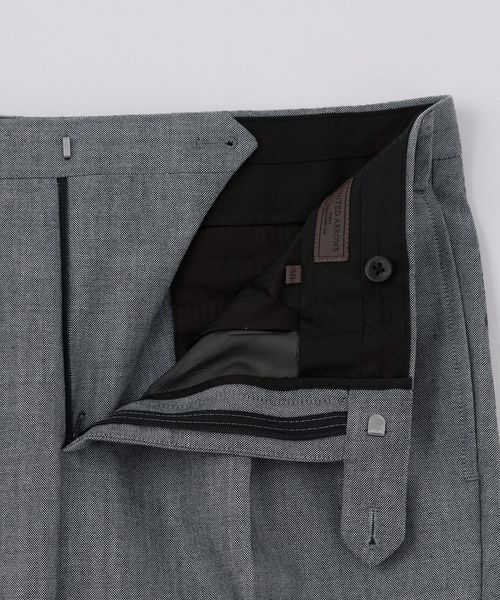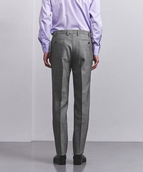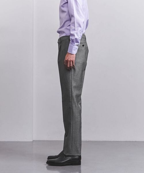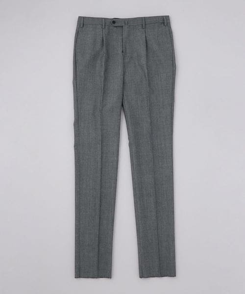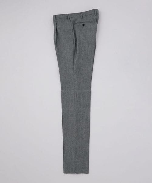 スラックスはプリーツ量を深くし、腰回りに余裕をもたせることでテーラードジャケットとのバランスを取ったテーパードシルエットです。