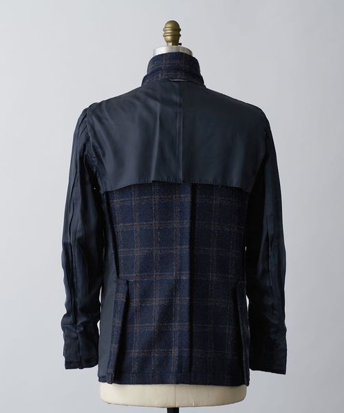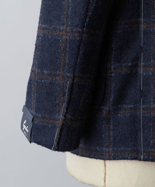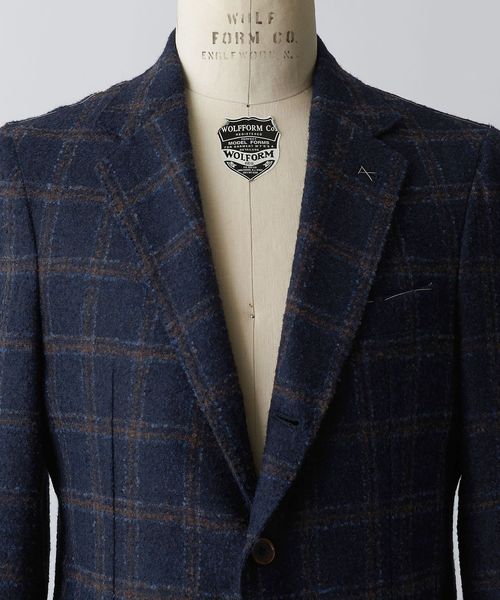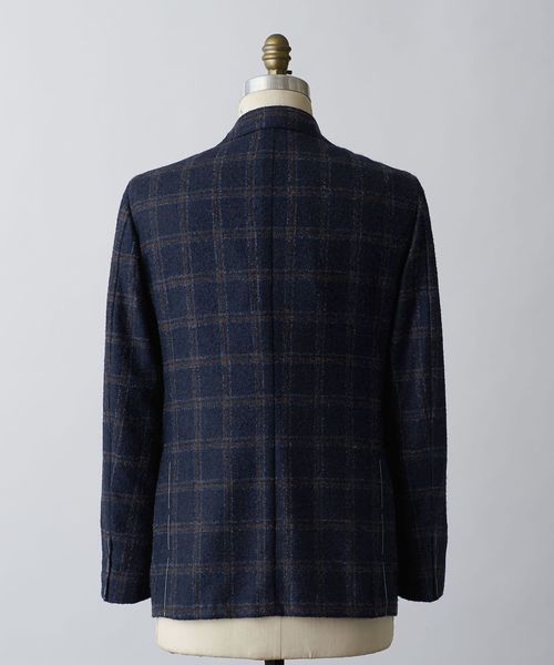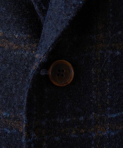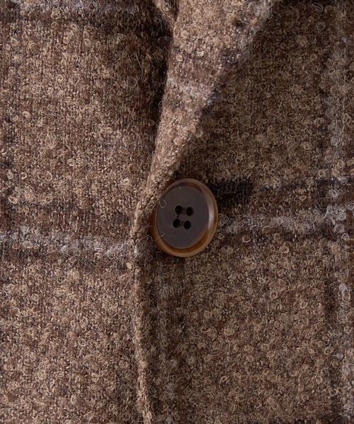 表情豊かなブークレ素材とモダンな配色のチェック柄がマッチしたジャケットです。