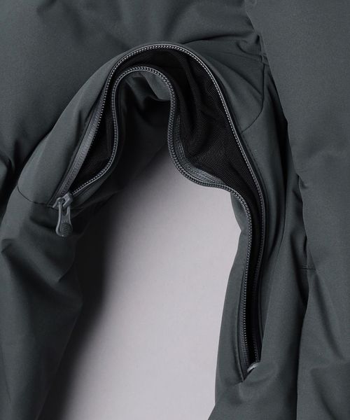 ・フロントジッパー部分に採用されたデュアルジップベンチレーションは、2列のジッパーとその間に配置されたメッシュ生地により衣服内に外気を取り込み、ジャケット内にこもりやすい不快な熱や湿気を逃がすことが可能。