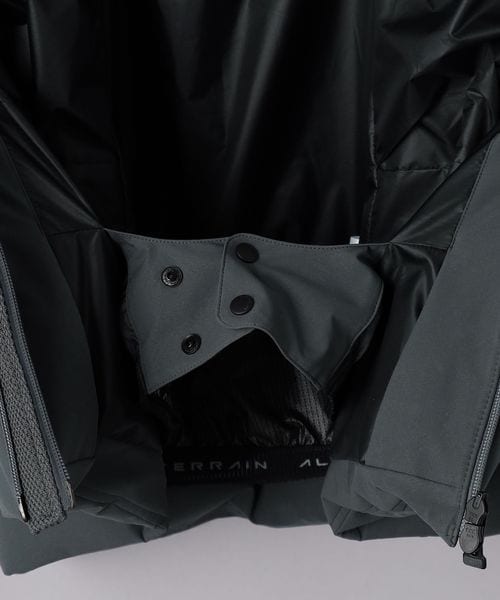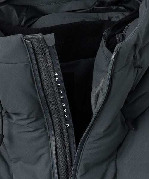 ・フードをコンパクトに収納するだけでなく、雨などの悪天候下での着用も考慮しフードへの水たまりを防ぐパラフードシステム(トップオープンファスナーを採用し、フードの着用が必要な際に素早いフード開口が可能)を採用。