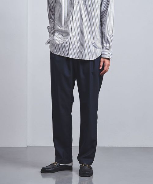 1プリーツの程よいゆとりの腰周りから、裾にかけてすっきりとしたテーパードシルエットのイージーパンツ。