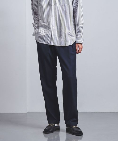 1プリーツの程よいゆとりの腰周りから、裾にかけてすっきりとしたテーパードシルエットのイージーパンツ。
