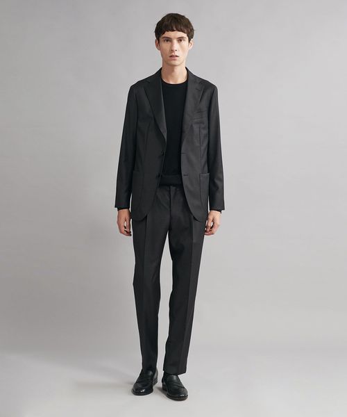 ノーネクタイでのニットやシャツを合わせたスタイルを想定したセットアップモデル。