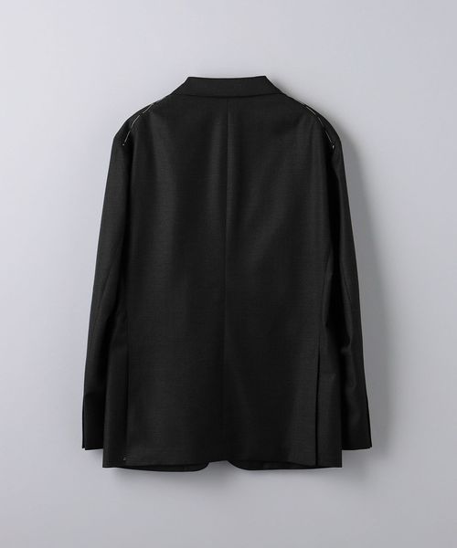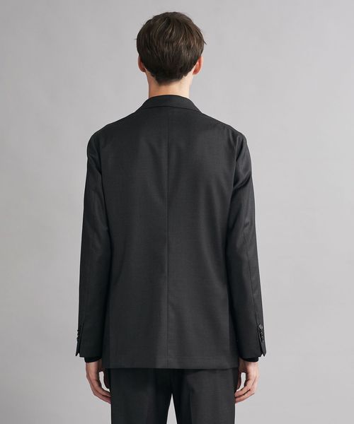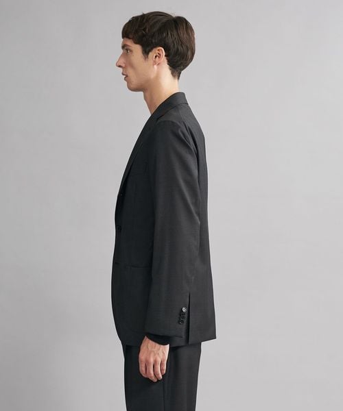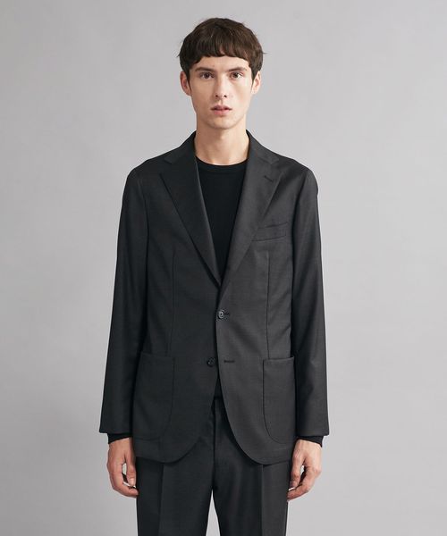 接着芯を使用し、毛芯やパットを使用した構築的なシルエットのスーツと比べ軽く柔らかい着用感です。