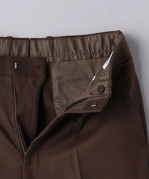 幅広いシューズとのスタイリングを楽しめるワイドテーパードスラックス"
