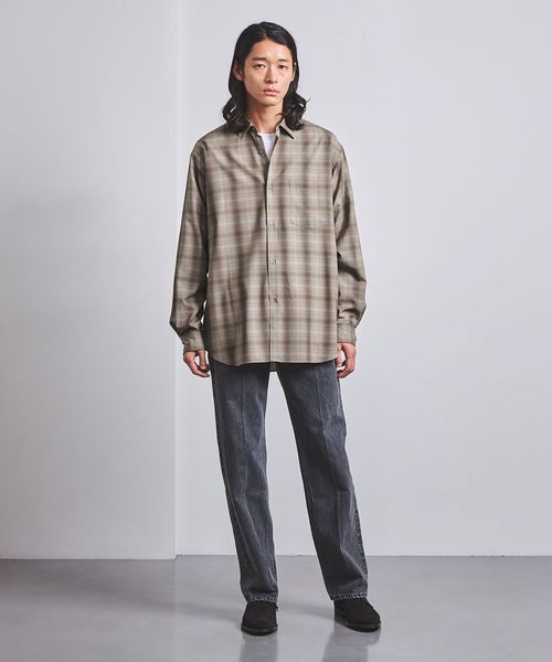 上品な印象のオンブレチェックは、デニム等の定番カジュアルボトムスはもちろん、スラックスできれい目にあわせるのもおすすめです。