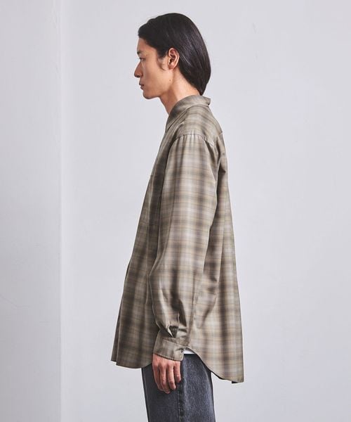 落ち着いた配色で、エレガントな雰囲気のチェックロングスリーブシャツ。