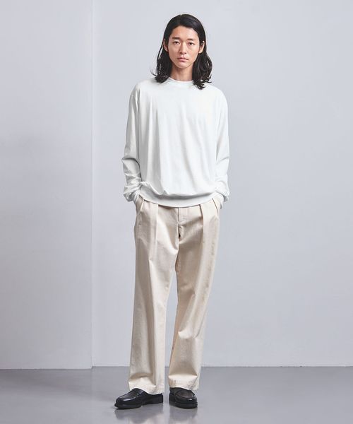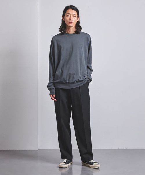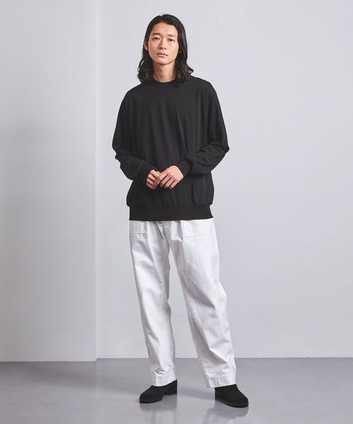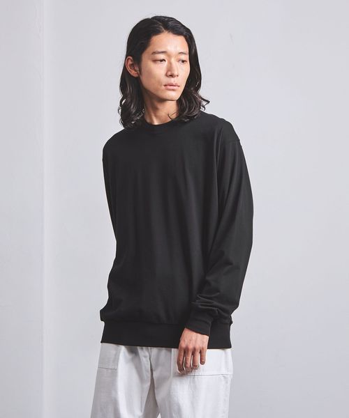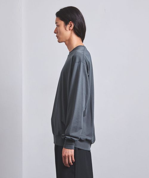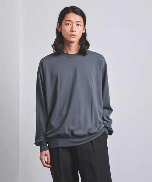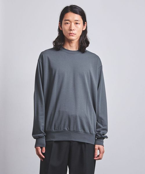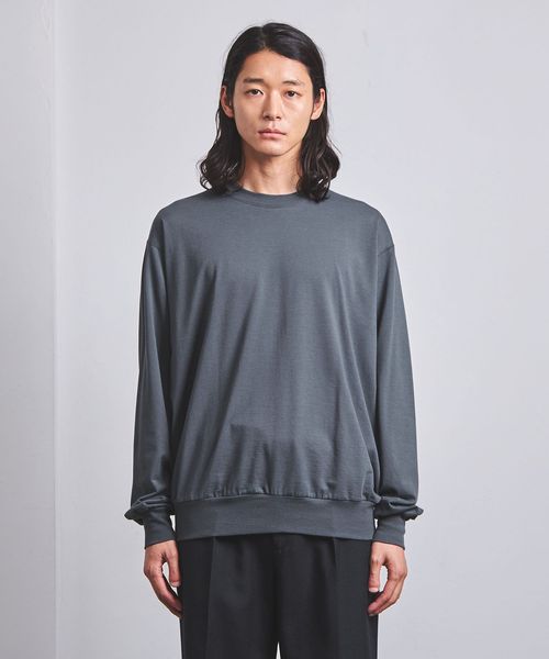 裾や袖口のリブ仕様など、スウェットのような見た目とTシャツ感覚の軽快な着心地がポイント。一枚着からインナー使いまで幅広く着用しやすく、ロングシーズン重宝する一着です。