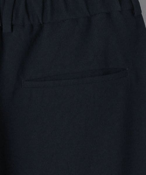 後ろ身にはギャザーが入ったプリーツ入りのディテールで、カジュアル過ぎない装いやベルトをするスタイリングなどにも対応可能。