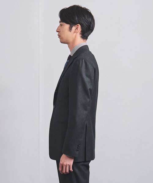 テーラードジャケットは、広めの肩幅とやや長めの着丈に加え、ウェストにかけてシェイプした美しいシルエットが特徴。