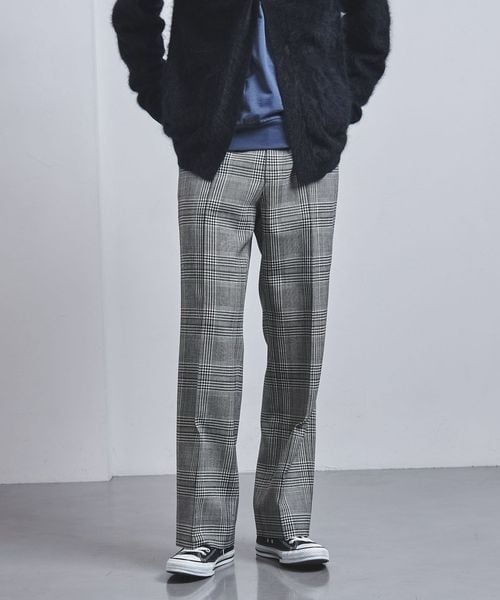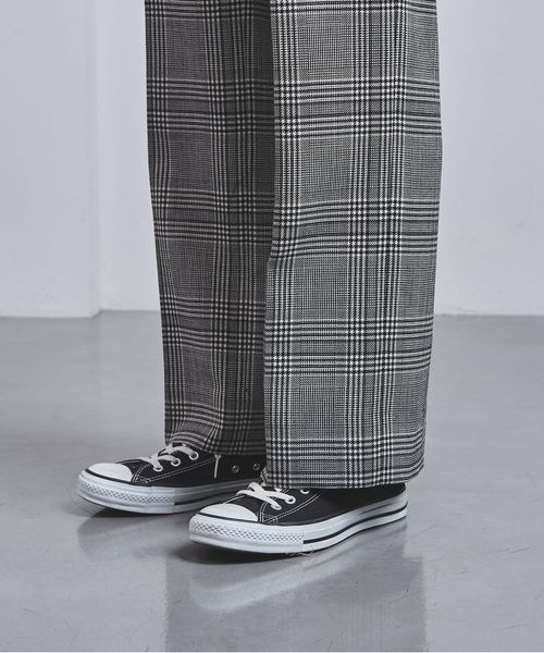 モダンチェック ノープリーツ ワイドストレートパンツ