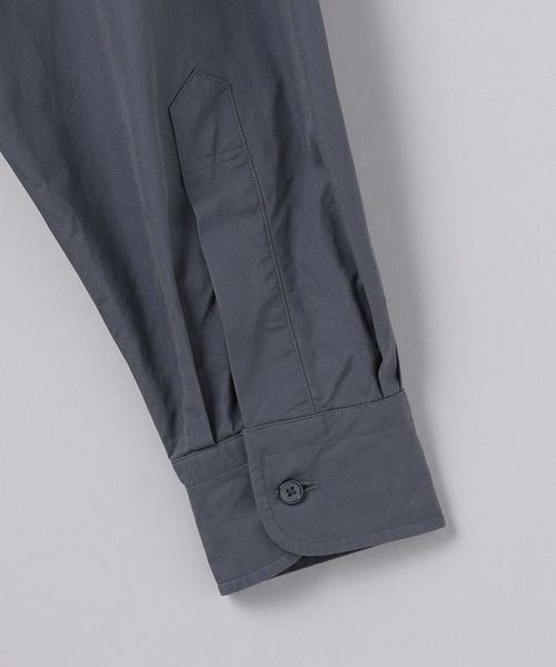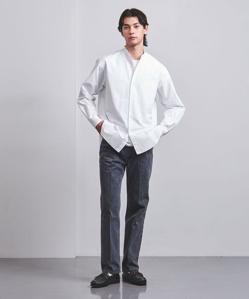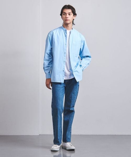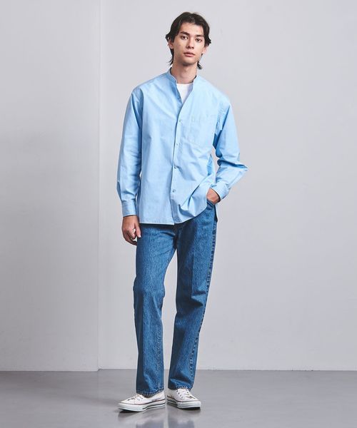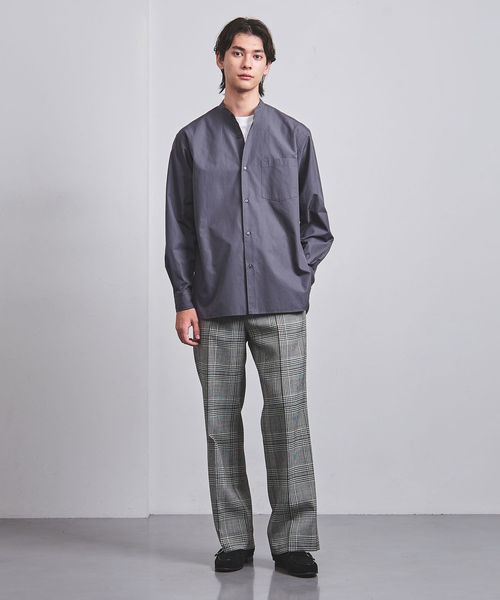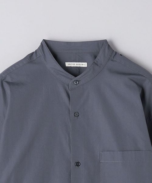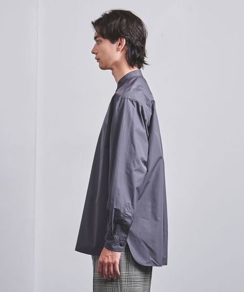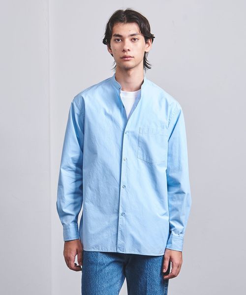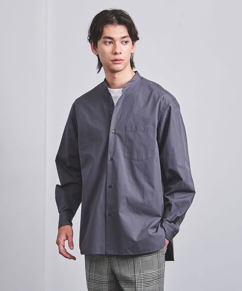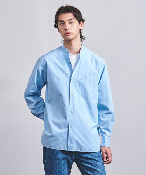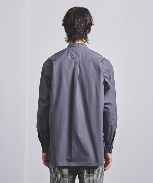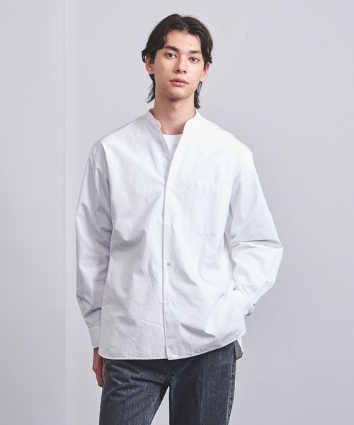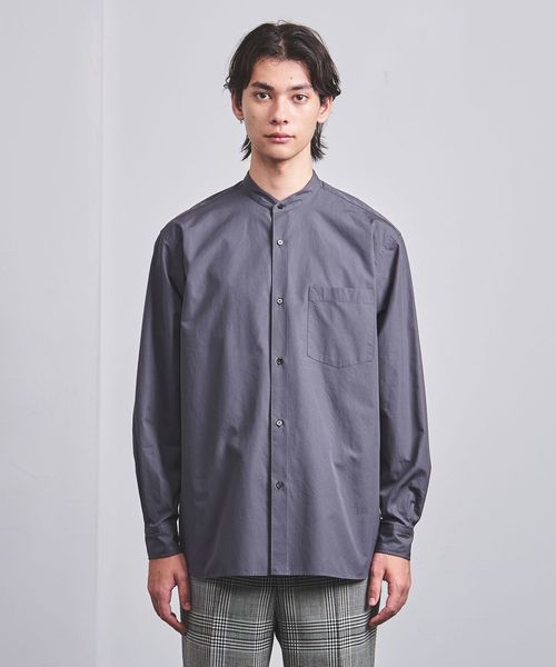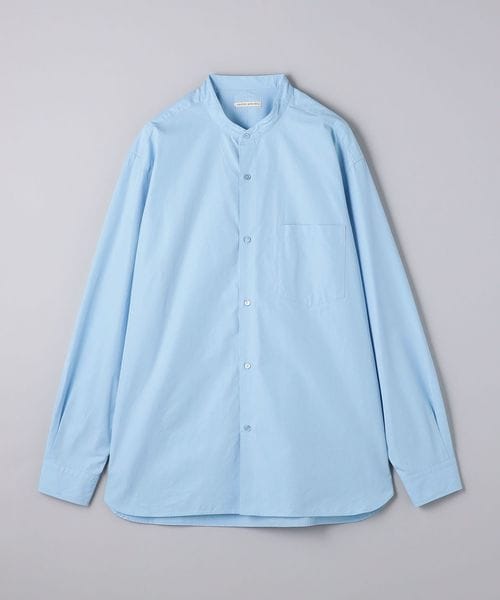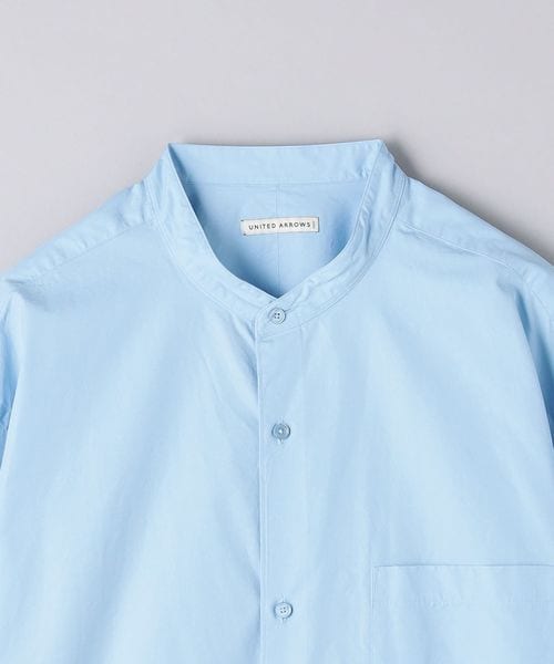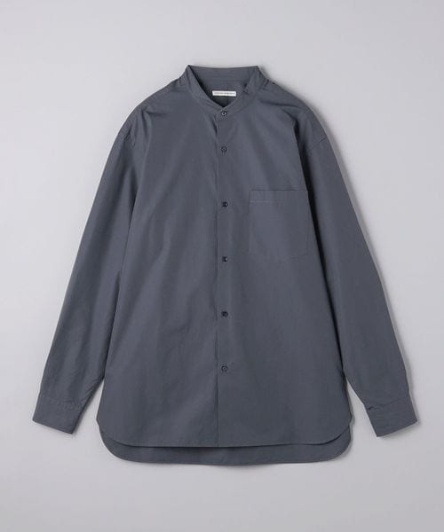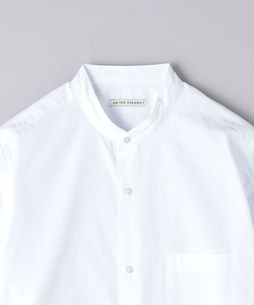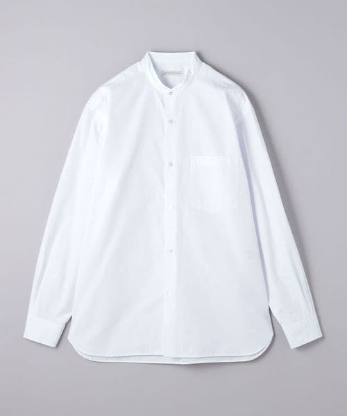 シンプルなデザインですっきりとした印象のバンドカラーシャツ。