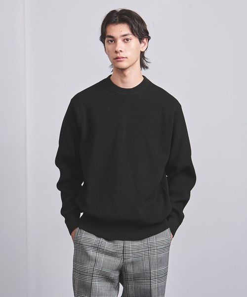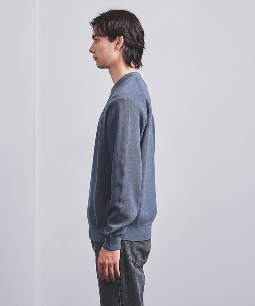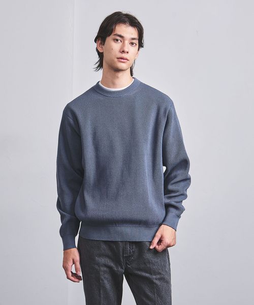 スウェットライクに着こなせるクルーネック仕様の畦ニット。