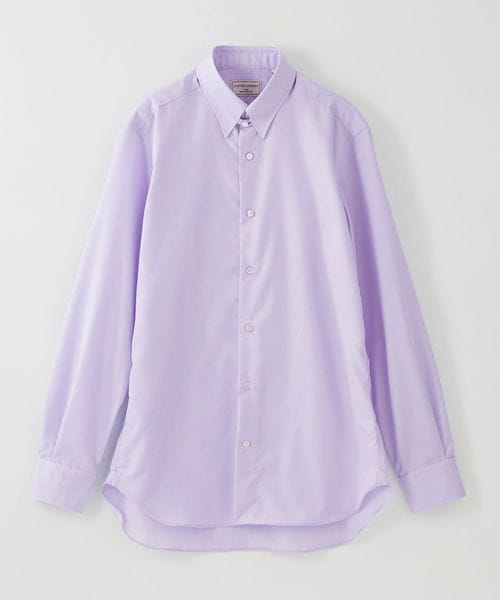 色気のある上品な色合いのライラック色のシャツ。