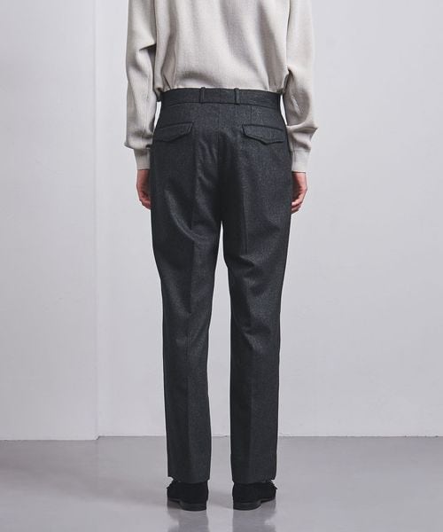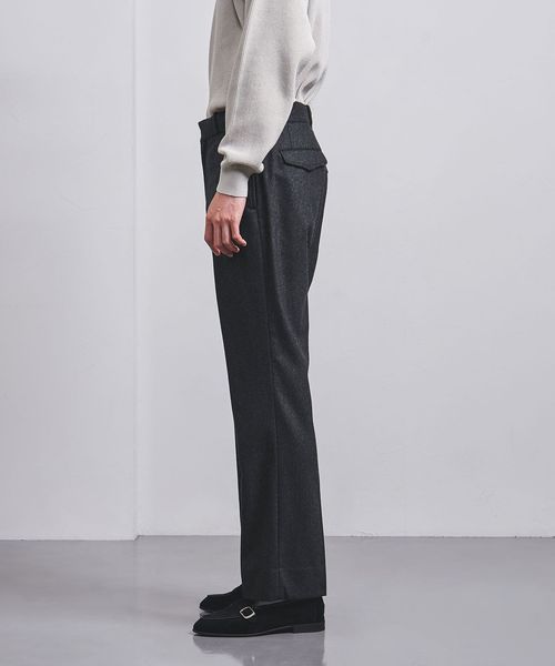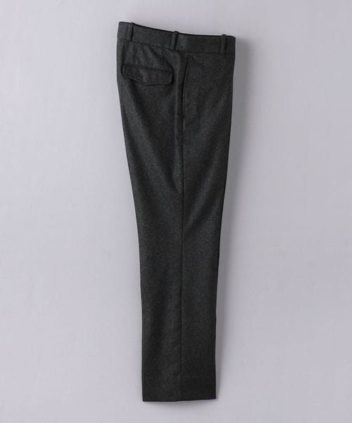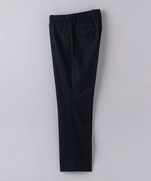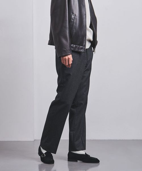 程よくすっきりとした腰回りから膝下にかけ、ストレートシルエットのパンツ。
