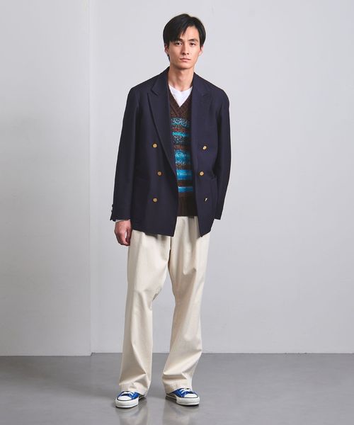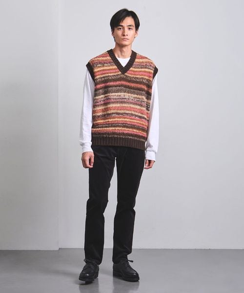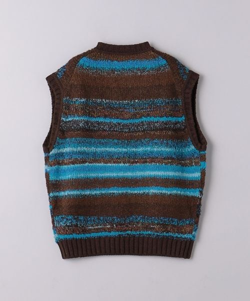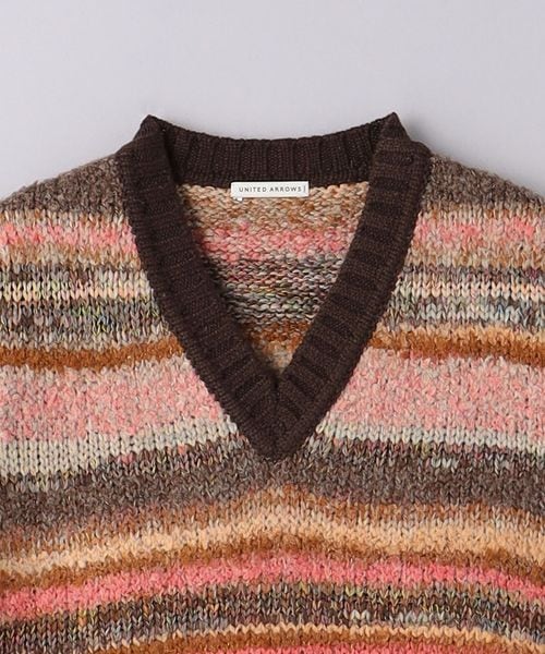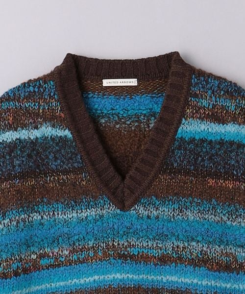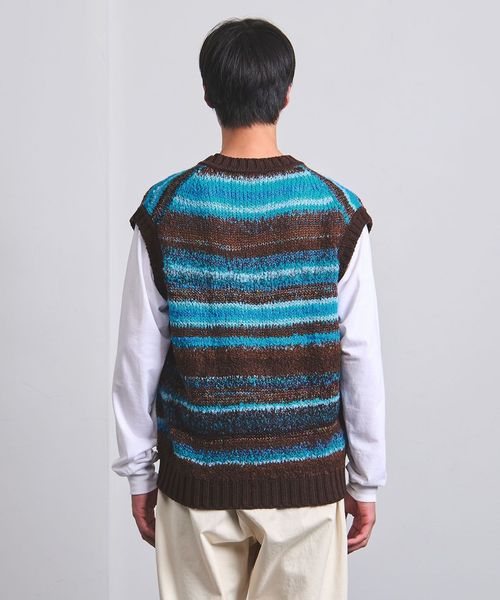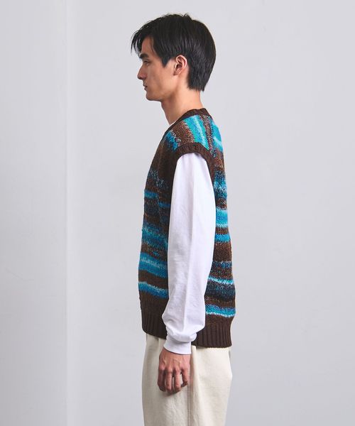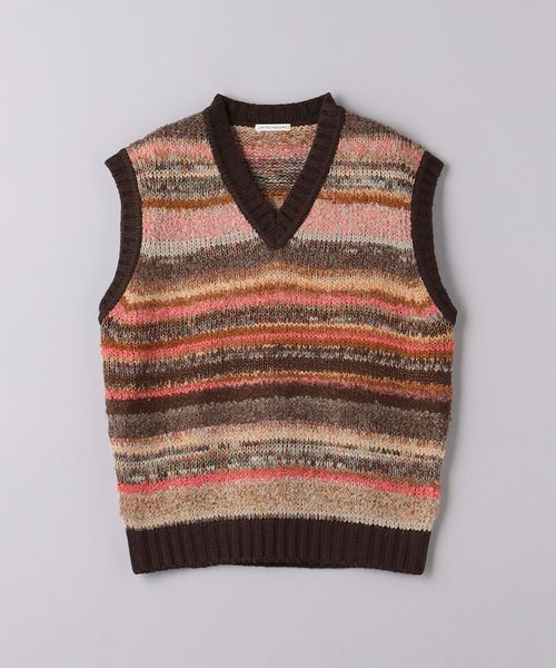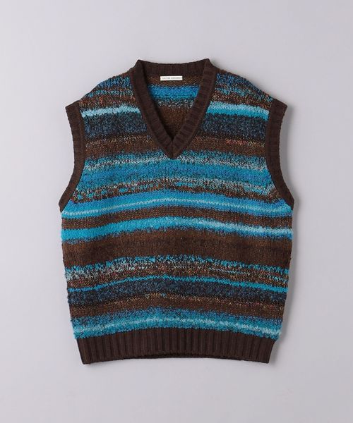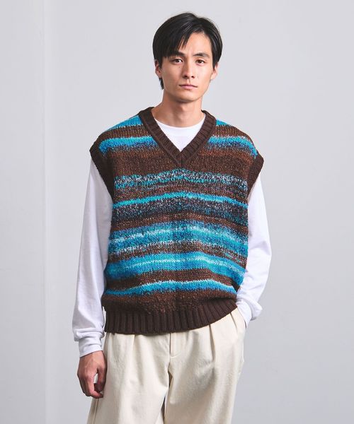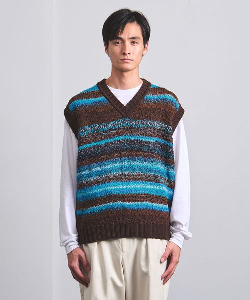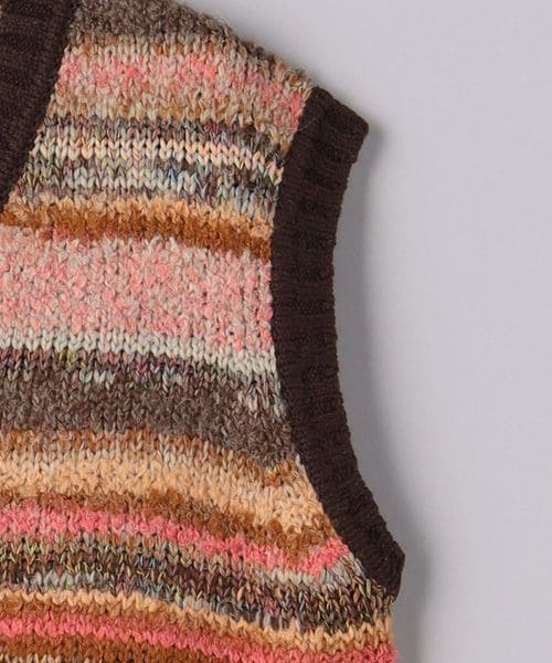 鮮やかな表情のボーダーが目を引くVネックベスト
