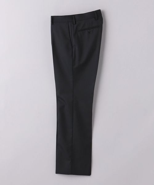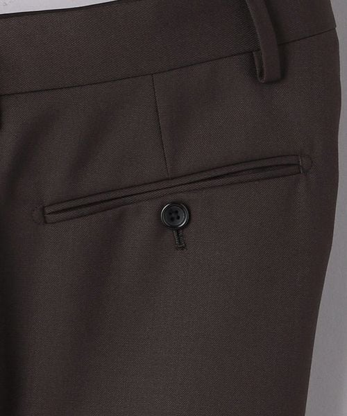 すっきりとしたウエスト周りと、膝下から裾にかけてストレートシルエットのパンツ。