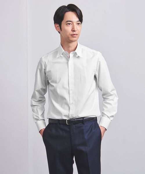 ネクタイのノットが綺麗に見えるタブカラー仕様のドレスシャツ。